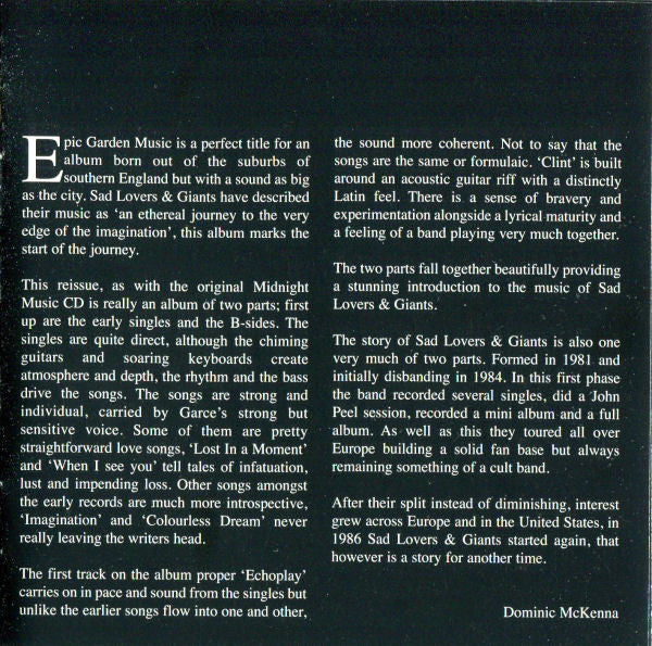 Sad Lovers And Giants – Epic Garden Music - Cd